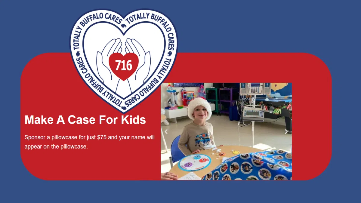 This holiday season give back to the children in WNY who need help the most, with Totally Buffalo Cares Make a Case For Kids! You can sponsor a pillowcase for $75 with your name on the pillowcase or volunteer your time to help stuff the pillows!