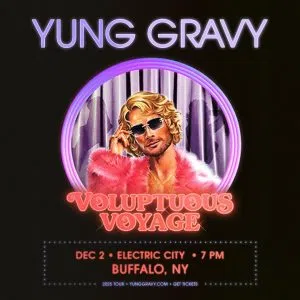 Our December outing is taking us to party the night away at the Yung Gravy concert at Electric City on December 2. Bring your bestie, hop in the limo provided by Buffalo Limousine, and cruise downtown with Cass and Anthony and the Baddie Moms Club to shake what your momma gave you!