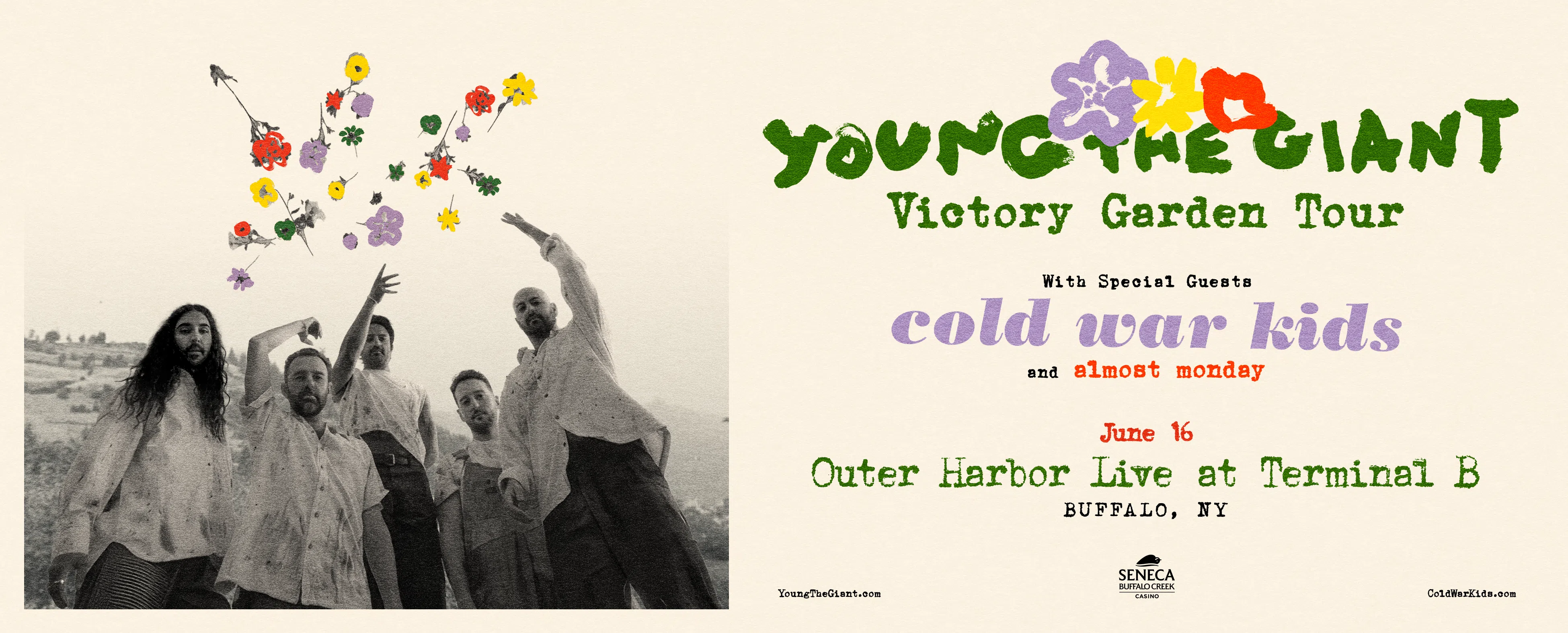 Join us as Young The Giant brings the Victory Garden Tour to Buffalo for a huge summer night on the waterfront. Don't miss this outdoor show as part of the Seneca Buffalo Creek Outer Harbor Live Concert Series.